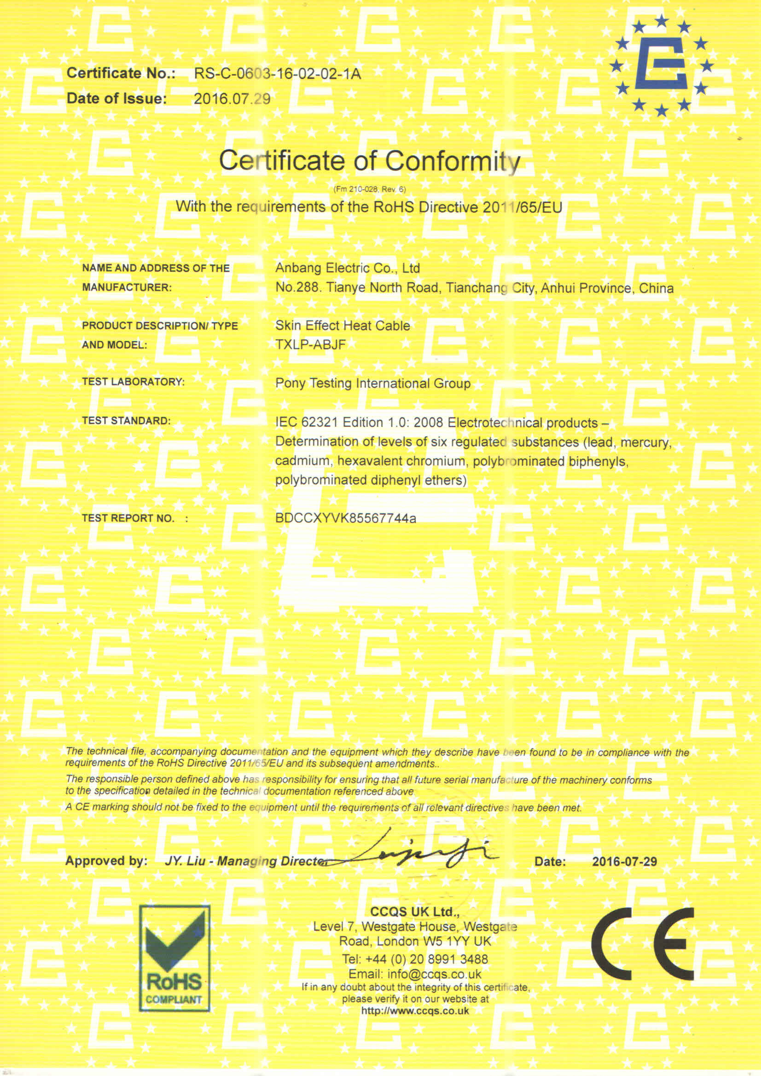 安邦電氣股份有限公司,總部位于北京市長(zhǎng)安街,成立于2004年,注冊(cè)資金10088萬。安徽生產(chǎn)基地占地面積63000平方米,擁有66套各類生產(chǎn)線,其中進(jìn)口生產(chǎn)線6套。國(guó)家高新技術(shù)型企業(yè),滁州市市長(zhǎng)質(zhì)量獎(jiǎng)企業(yè),專精特新“小巨人”企業(yè),擁有國(guó)家知識(shí)產(chǎn)權(quán)局授權(quán)的45項(xiàng)專利,其中發(fā)明專利28項(xiàng) , 主筆《太陽能熱利用自限溫電熱帶安裝規(guī)范》行業(yè)標(biāo)準(zhǔn),參編《自限溫電伴熱帶》國(guó)家標(biāo)準(zhǔn)、《工業(yè)和商業(yè)用電阻式伴熱系統(tǒng)》國(guó)家標(biāo)準(zhǔn)、《太陽能熱利用自限溫電熱帶》行業(yè)標(biāo)準(zhǔn)、《爆炸性環(huán)境 電阻式伴熱器》國(guó)家標(biāo)準(zhǔn)等7項(xiàng)國(guó)家標(biāo)準(zhǔn)。企業(yè)通過UL認(rèn)證,國(guó)家強(qiáng)制性 CCC產(chǎn)品認(rèn)證,ISO9001質(zhì)量管理體系認(rèn)證,ISO14001環(huán)境管理體系認(rèn)證,ISO45001職業(yè)健康安全管理體系認(rèn)證,Q/SHS0001.1健康、安全與環(huán)境管理體系認(rèn)證,歐盟防爆ATEX認(rèn)證,歐盟CE認(rèn)證,RoHS認(rèn)證,俄羅斯海關(guān)聯(lián)盟認(rèn)證,國(guó)家防爆電氣CCC證書。產(chǎn)品系列:集膚伴熱系統(tǒng)、電伴熱系統(tǒng)、電加熱器、電地暖系統(tǒng)、集儀器儀表、電線電纜、高低壓配電柜(箱)、電纜橋架、閥門管件等等設(shè)計(jì)、制造、銷售。產(chǎn)品應(yīng)用于航天航空、軍工、石油、石化、天然氣、機(jī)場(chǎng)、化工、鋼鐵、隧道、消防、養(yǎng)殖、融雪化冰、室內(nèi)供暖、國(guó)家電網(wǎng)及眾多電廠等等國(guó)家重點(diǎn)工程。出口美國(guó)、英國(guó)、德國(guó)、俄羅斯、韓國(guó)、日本、哈薩克斯坦、烏克蘭、伊朗等眾多國(guó)家。